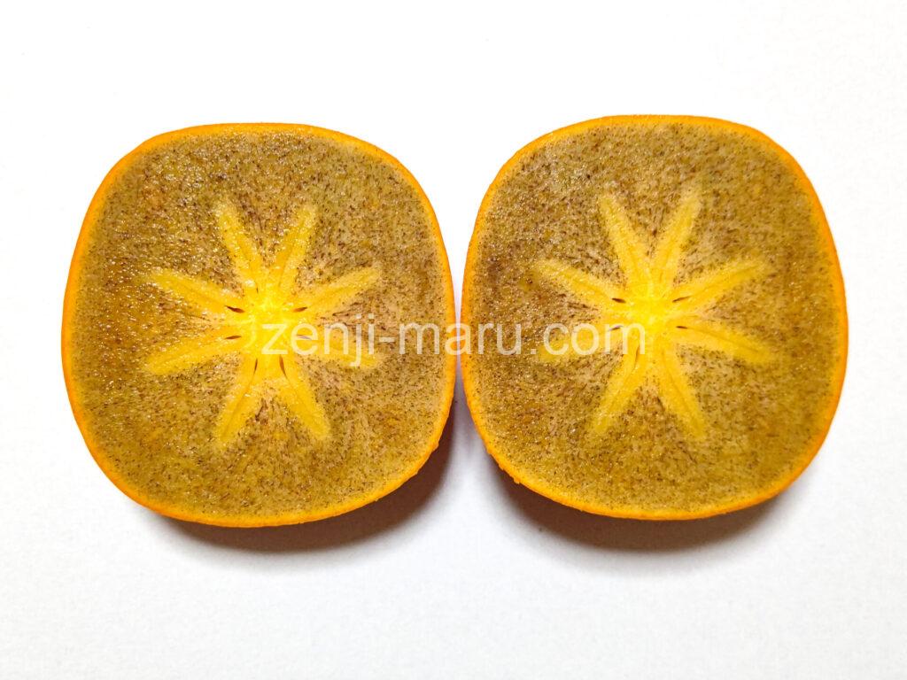 たとえばヨコ断面の柿は色が薄めだけど、タテ断面のものよりもずっと…最高に甘い果実でした。