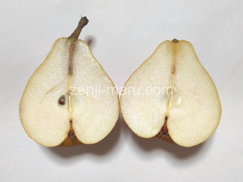 - 外皮の外は香りは弱めだけど、カットすると洋梨らしい甘く芳醇な香りが立つ。