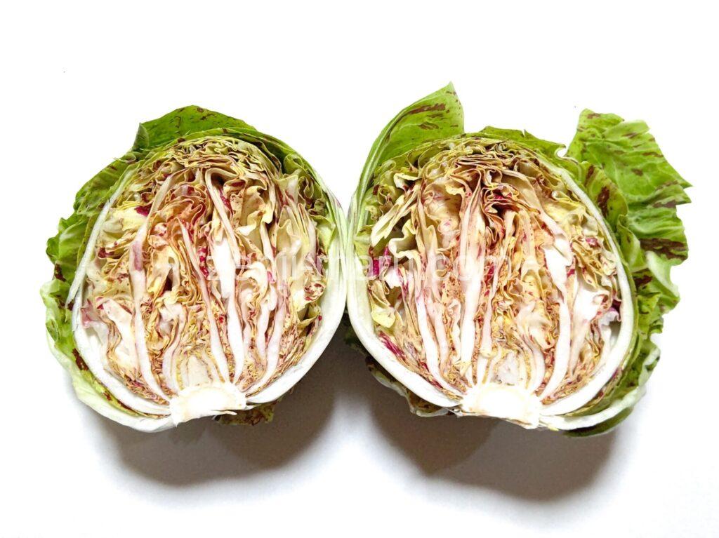 見た目はまさに、模様のあるレタスそのものだけど、じつはチコリーの一種です。