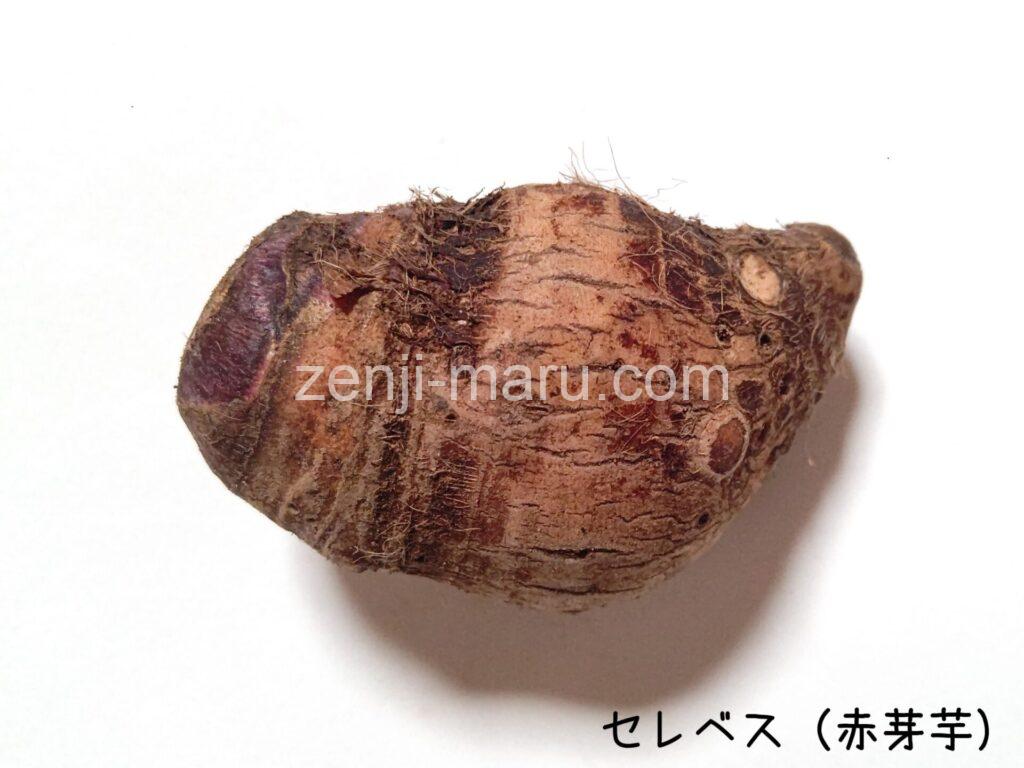 インドネシアにあるスラウェシ島(旧セレベス島)原産のサトイモです。芽や表面が赤みがかっているのが特徴で「赤芽芋(赤目芋)」「赤芽大吉(あかめだいきち)」などと呼ばれます。