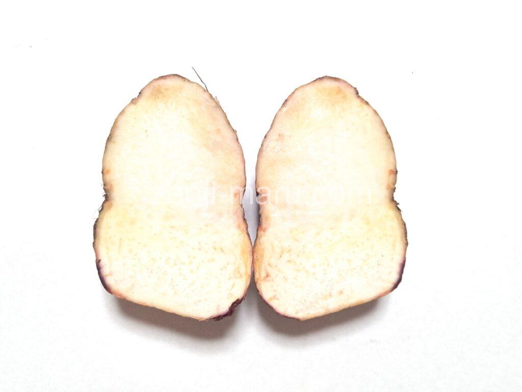 - 風味は一般的な里芋によく似ているけど、土っぽさが少なくて食べやすい。