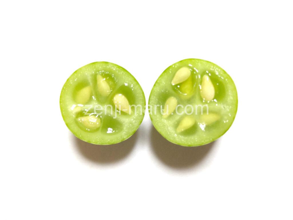 丸のまま食べると外皮がはじけて、種のみずみずしい部分がじわっと広がります。