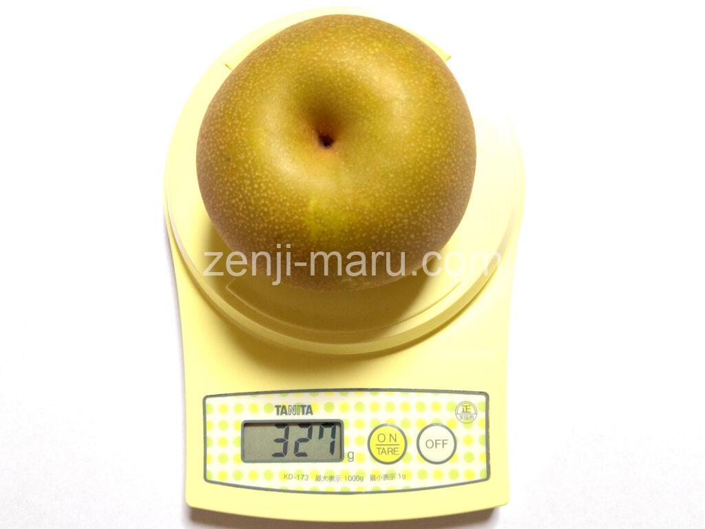 幸水が250g~350gと大小差は少ないのですが、玉水は大きいものは400g超えから小さいものは180gほどと、かなり個体差があります。