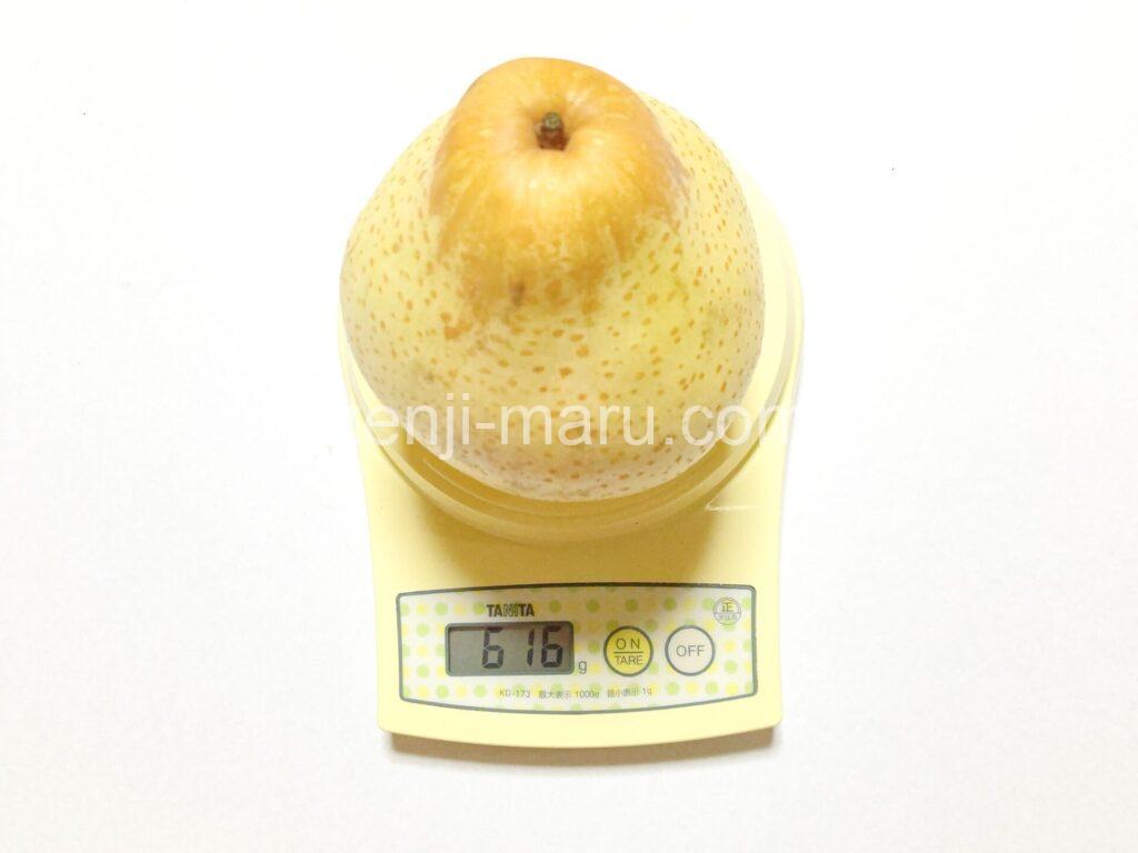 洋梨ほどではないけど果肉は柔らかく、みずみずしいです。甘味が強く、ほんのりと酸味もあります。皮が薄くて柔らかいので、皮ごと食べてもいいかもしれません。