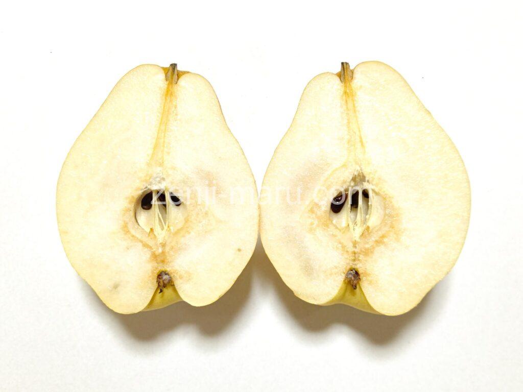 - 洋梨ほどではないけど果肉は柔らかく、みずみずしい。甘味が強く、ほんのりと酸味もある。皮が薄くて柔らかいので、皮ごと食べてもいいかも。