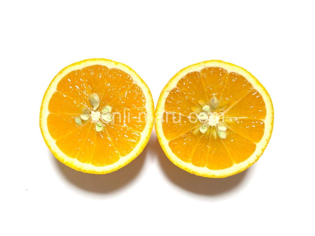 • サイズはオレンジと同じくらいで、外皮表面の質感もオレンジに近く、少し厚い。日向夏のように、白い所も食べられる。