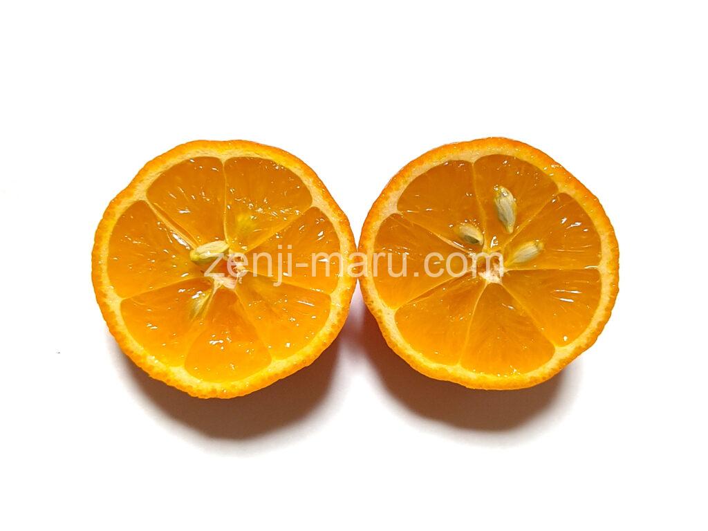 外皮はレモンに比べてずいぶん薄く、はっきりしたオレンジ色です。