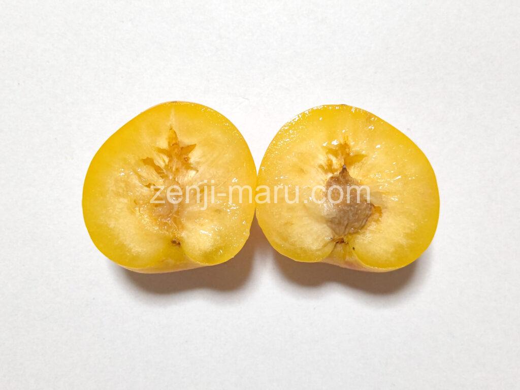 秋姫プラムや峰満イエローは、ケルシーみたいに種のところに空洞ができていることが、ときどきあります。
