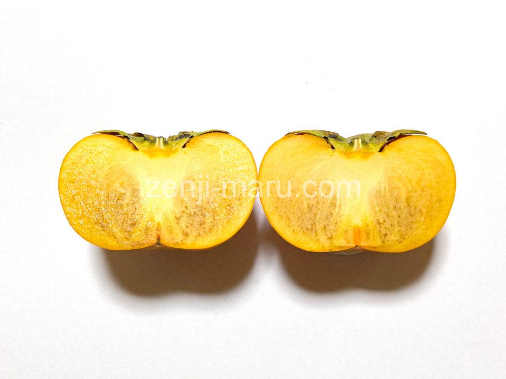 外皮の固さは富有と同じくらいで、剥いたほうが食べやすいけど、剥かなくても大丈夫といったところです。