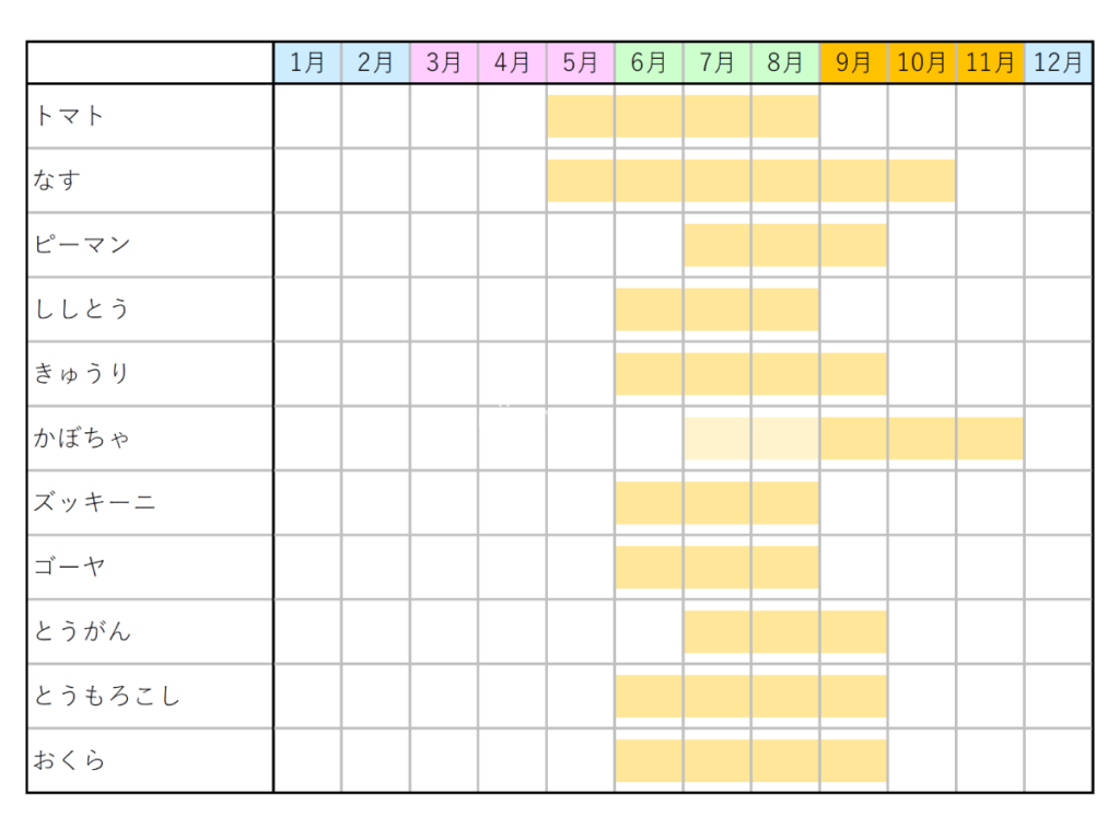 | 主な生産地 | 沖縄(秋~春)、宮崎・長崎・群馬(夏) |