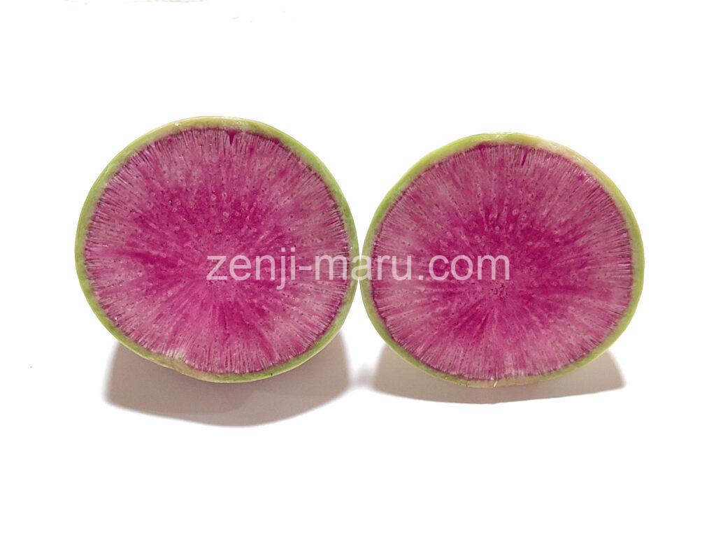 苦味や辛味が少なく、サラダや甘酢漬けに向いています。