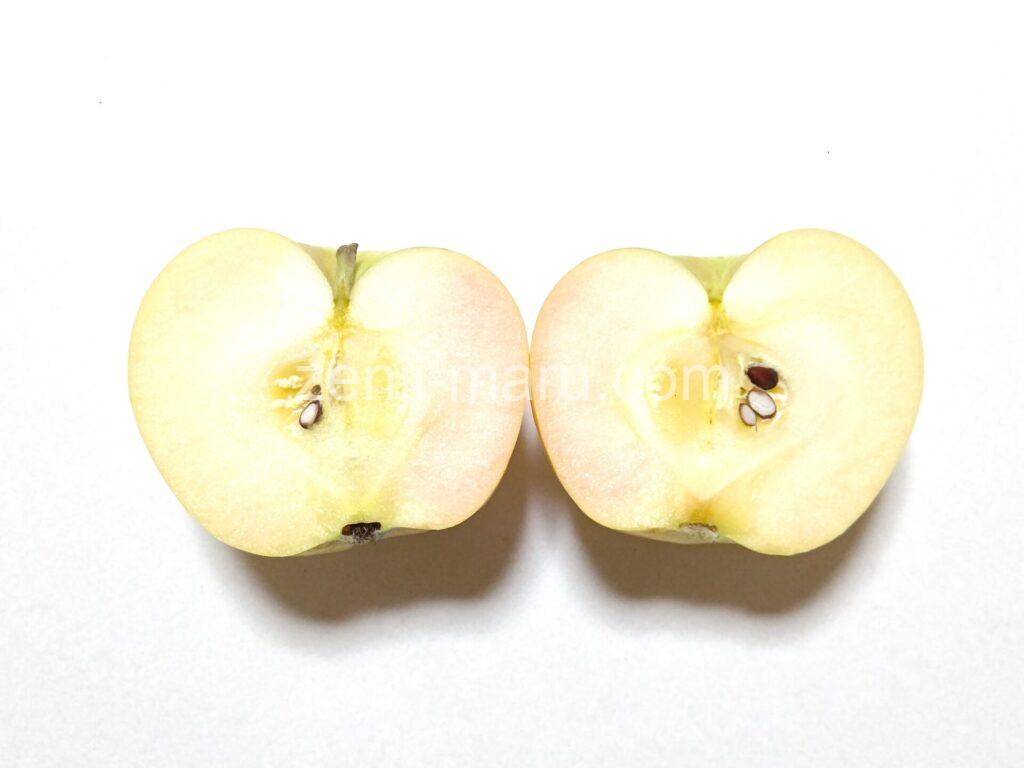 甘味はとくに強いわけではないけど、香りと食感が良いのでおいしく感じます。ほんのりピンクの色もきれいです。後味がとてもさっぱりしていて、酸っぱい系のりんごの中では刺激が穏やかです。