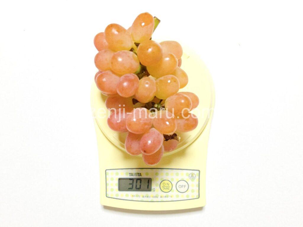 - 一房250g~350gのものが多い印象。粒の長さは今回スーパーで購入したもので2.5cm~3cmほど。