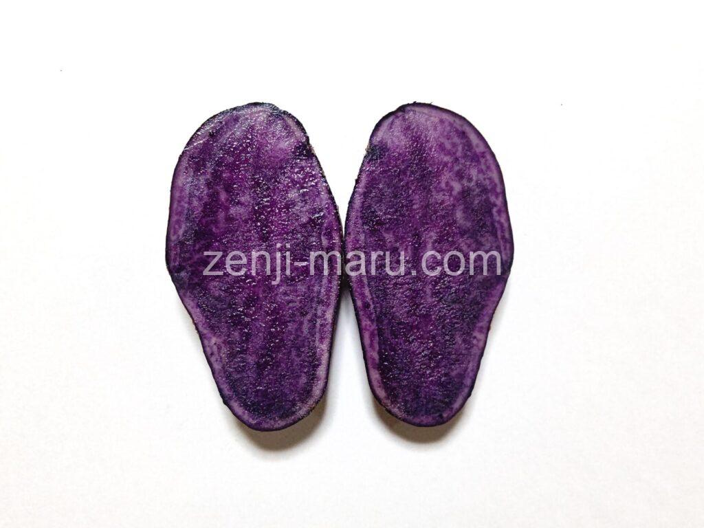 まさに紫芋のじゃがいも版のようです。おそらく普通のじゃがいもをイメージしていたら、びっくりします。