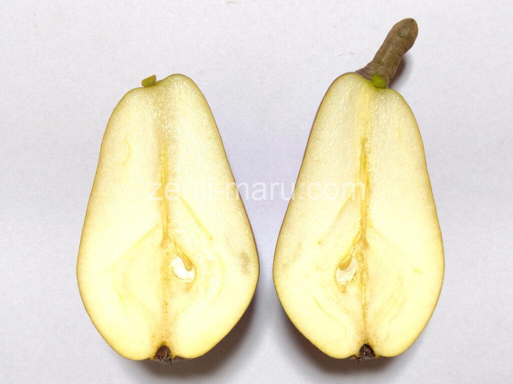 外皮も中も洋梨にしては香りが淡く、味はさっぱりしています。