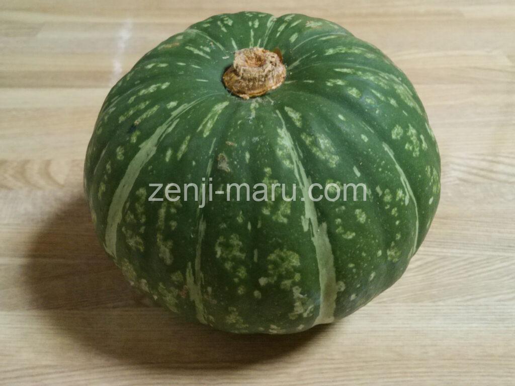 - 見た目はふつうの玉売りかぼちゃと同じようだけど、サイズは7割くらい。