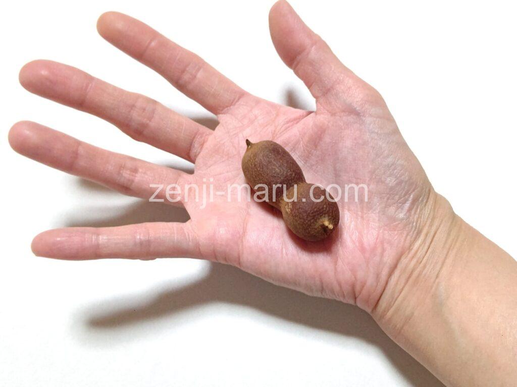 - 形は落花生のようで、少しそれを大きくしたくらいのサイズ。