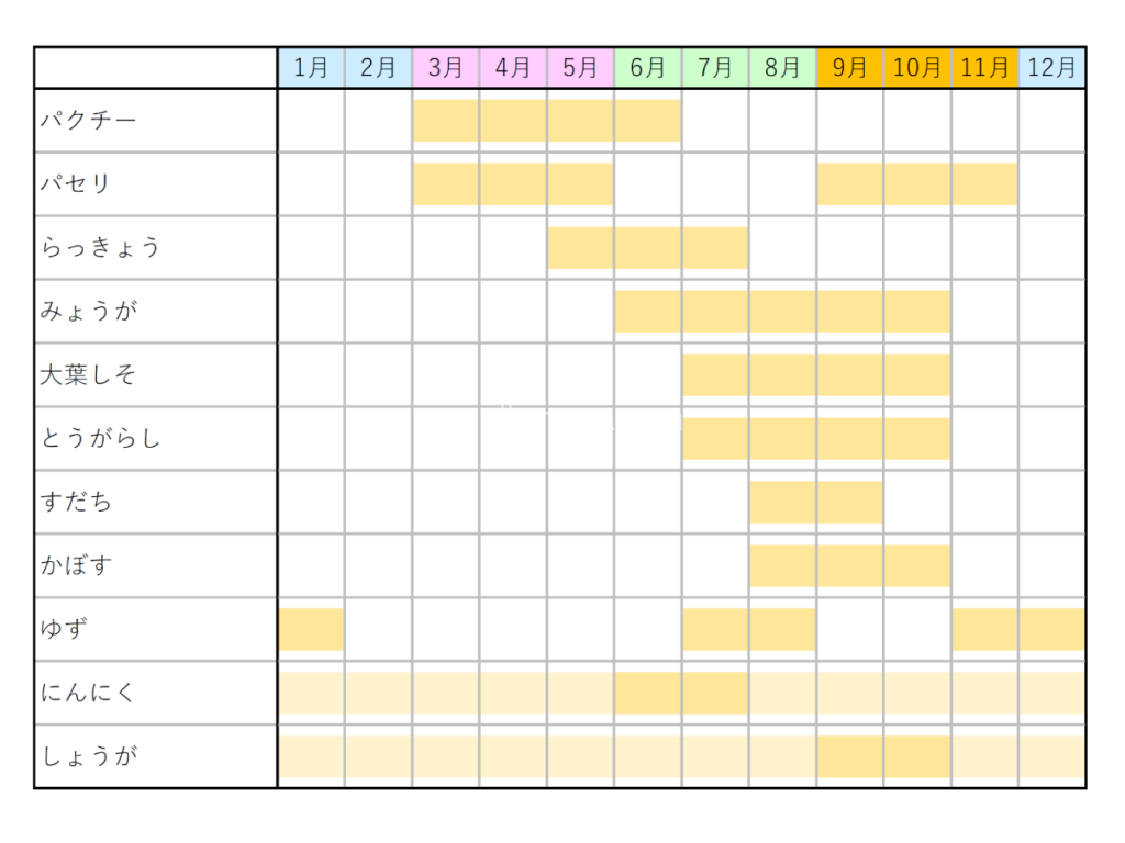 買える時期 | 完熟したものは乾燥保存により、通年入手可能。 |