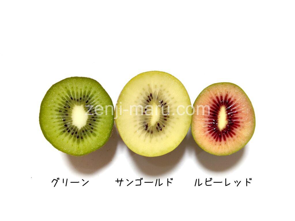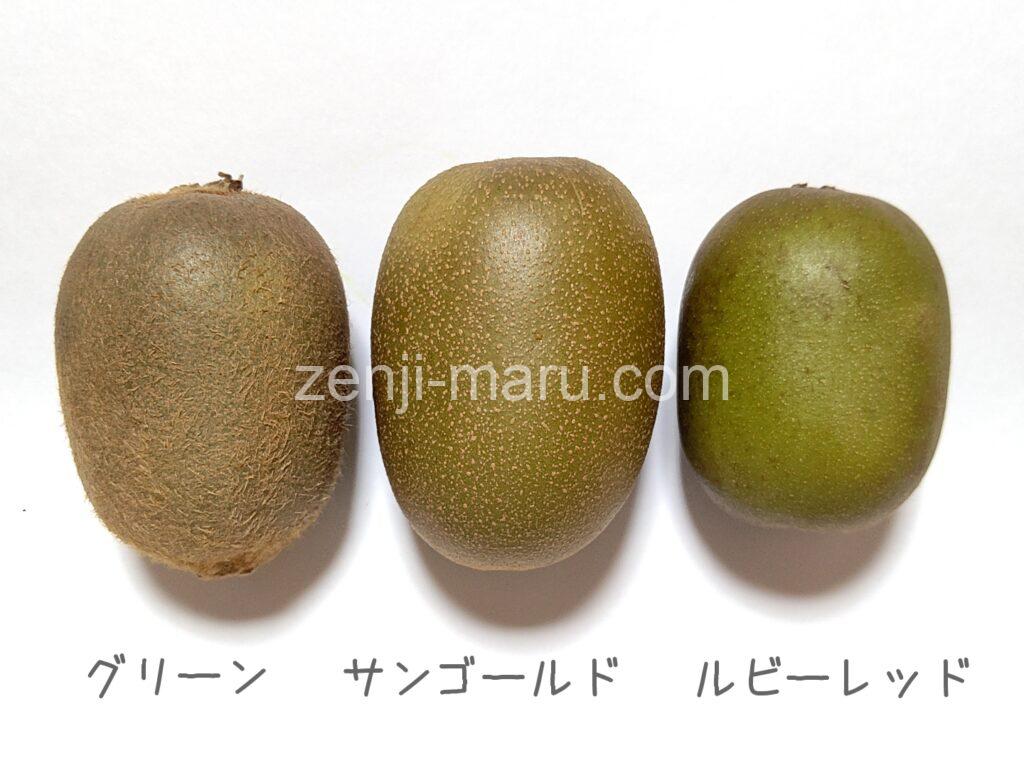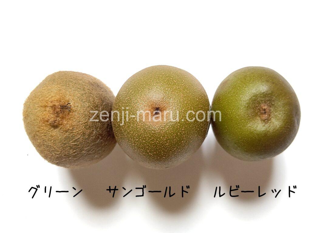 果皮の特徴は、グリーンは毛が生えてて、サンゴールドとルビーレッドはすべすべ。